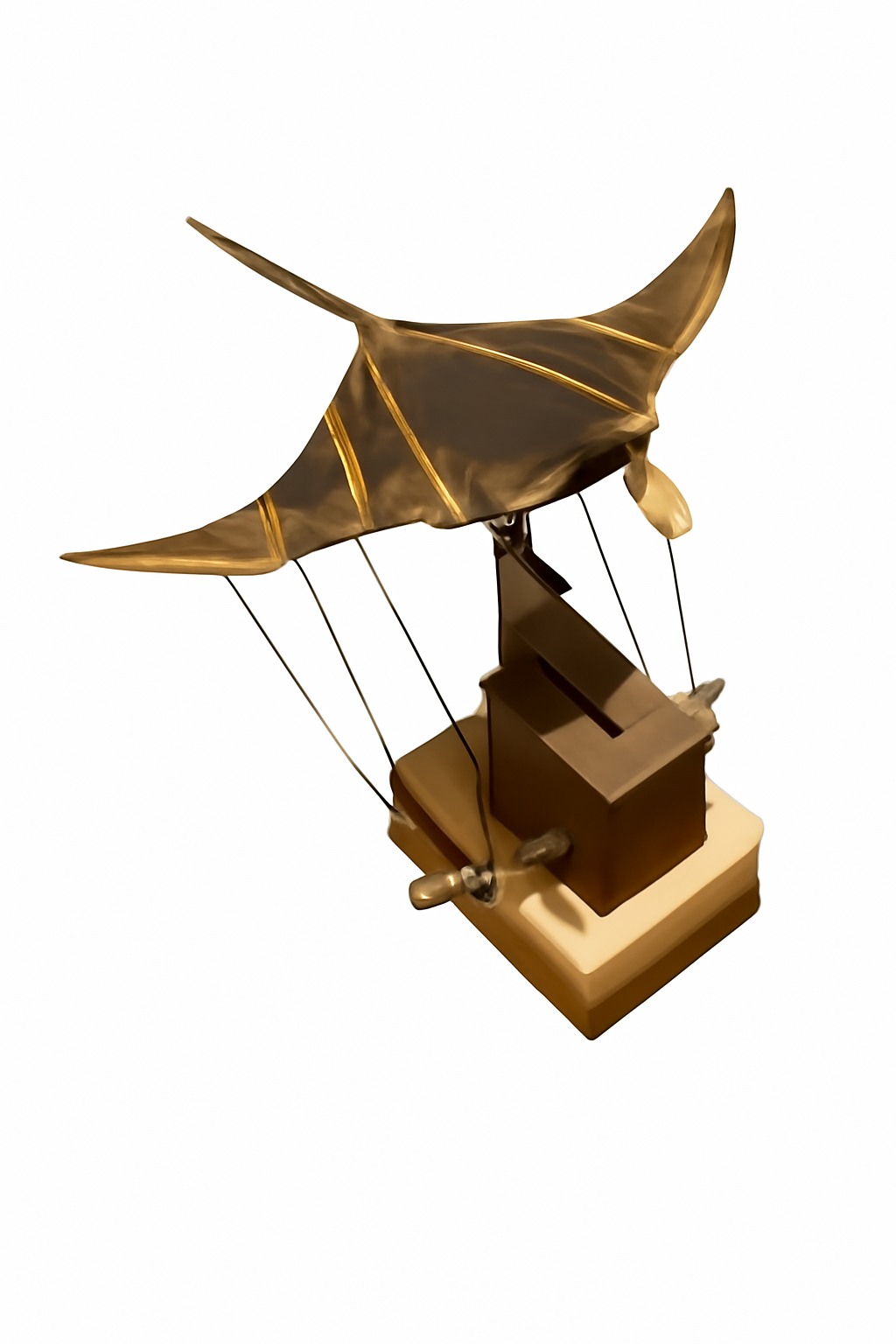 Fully mechanical — no batteries required. Turning the crank activates the internal gears and moves the wings in a smooth flapping motion.